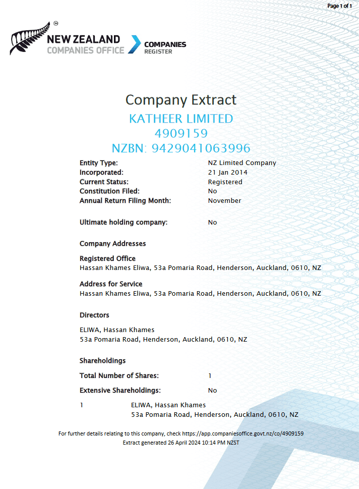 - Katheer Limited LTD, New Zealand